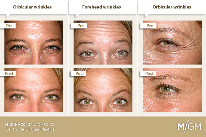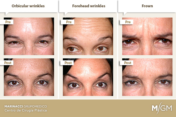 The botolininum toxin has been widely used for more than 10 years to smooth the expression wrinkles. It works by selectively blocking the muscle where the injection is administered. It is ideal for expression wrinkles surrounding the eyes (“crow’s foot”), frown lines between the eyebrows and forehead wrinkles.